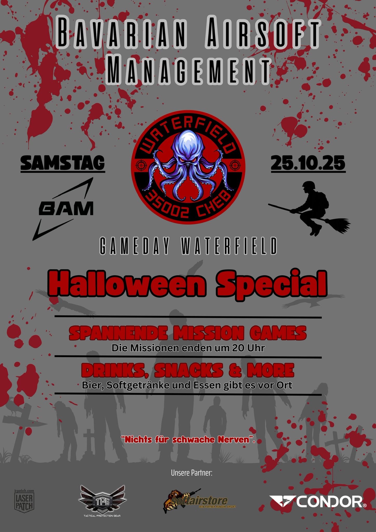Eine warme Mahlzeit, Getränke, Rauchgranaten, etc. können ebenfalls vor Ort erworben werden. Zudem stehen beheizbare Räumlichkeiten zur Verfügung sowie ausreichend Platz für die Ausrüstung.